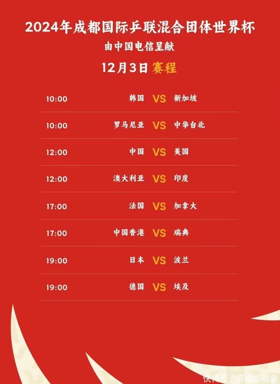 12月3日12:00,国乒VS好意思国队 ,央视CCTV5选拔性直播,咪咕体育付费直播。