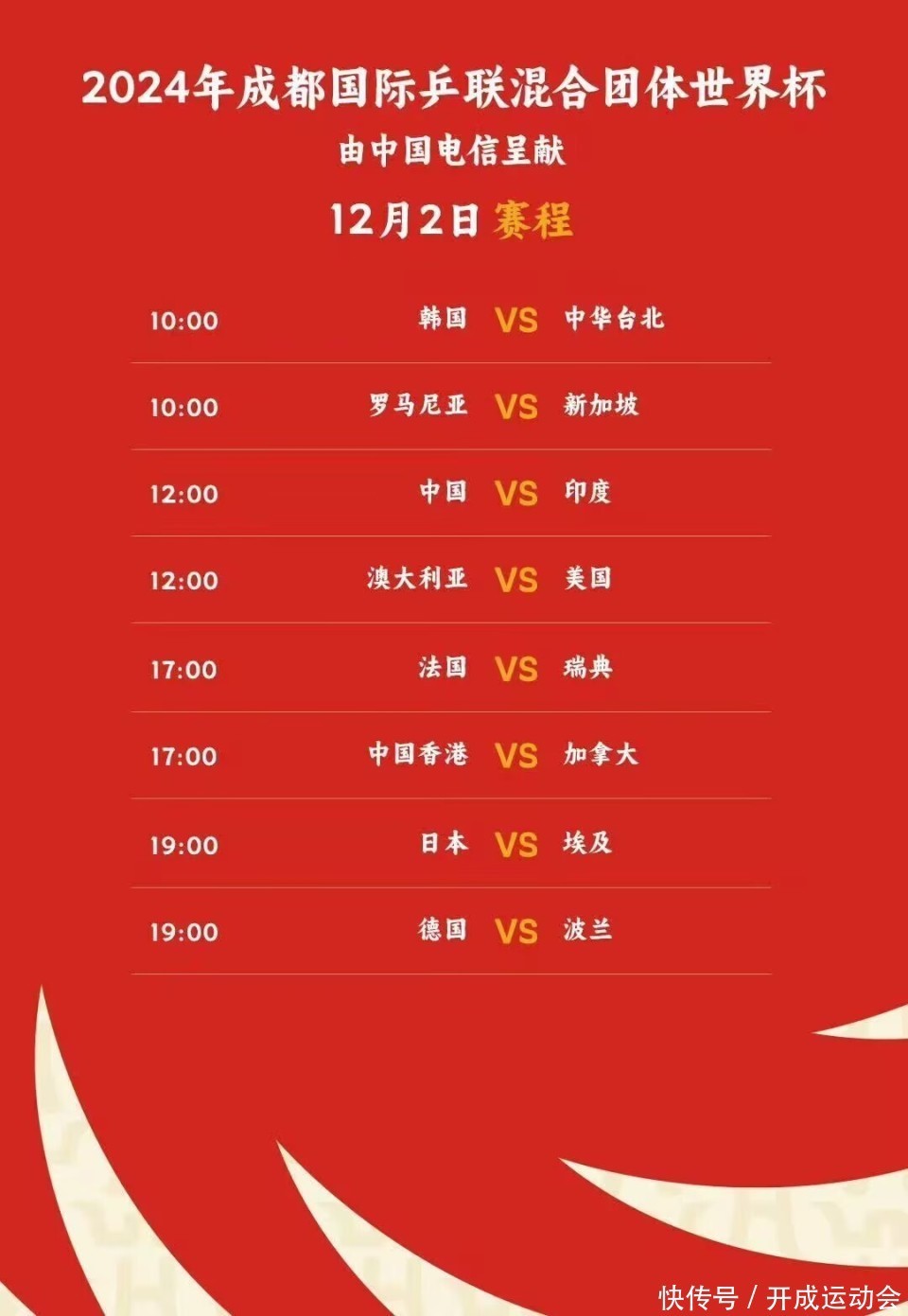 12月2日12:00,国乒VS印度队,CCTV5直播,咪咕付费直播!