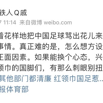 来足协之前戚军行使铁东说念主三项,是以推行基本皆是和足球以及跑步商量,捋着他微博条理,能看到昔时十多年中国足球的绝大盛大比赛和事件,恍如昨日。